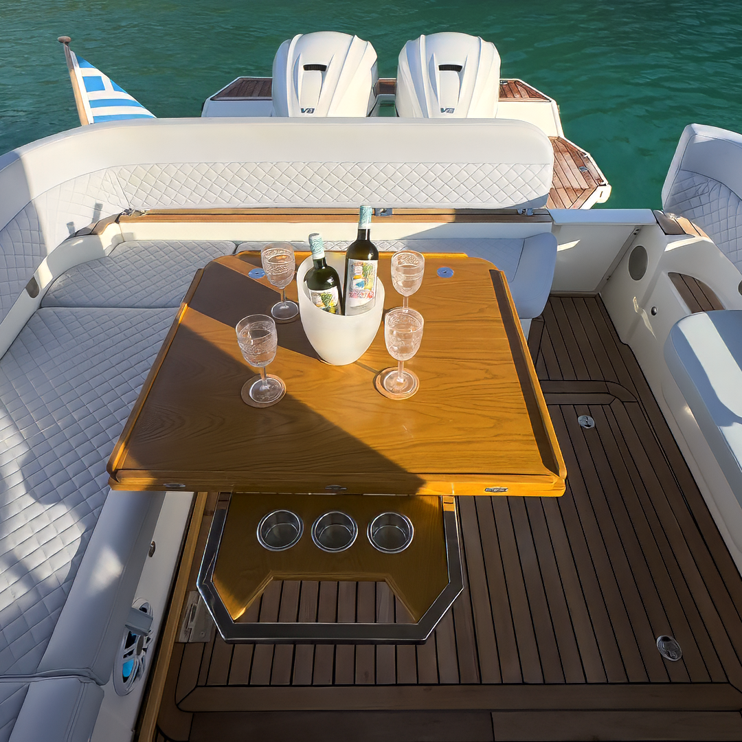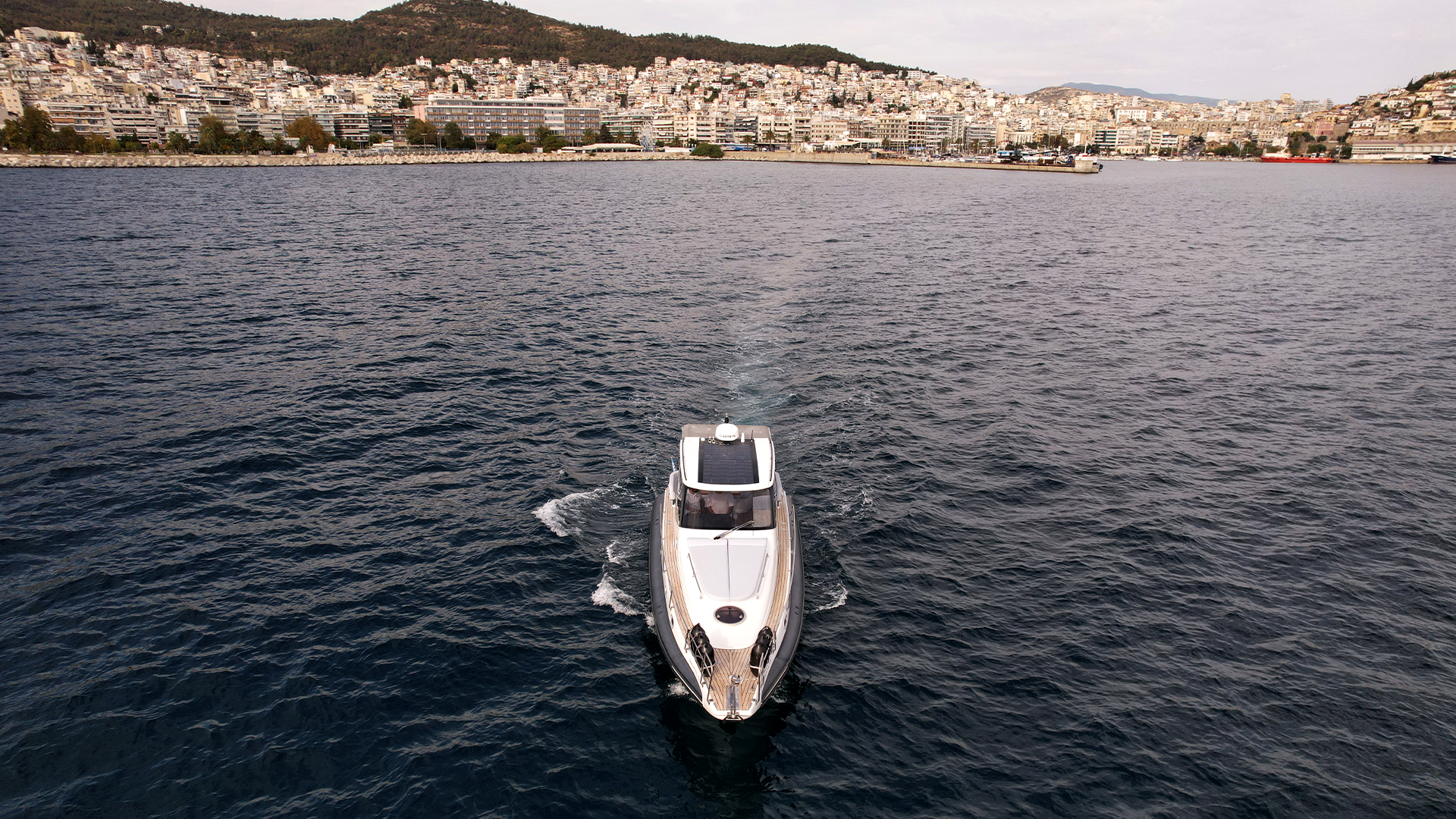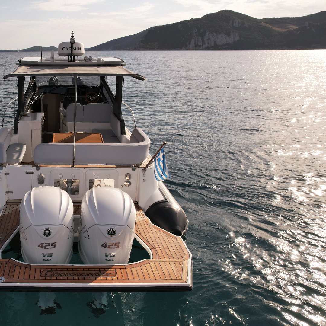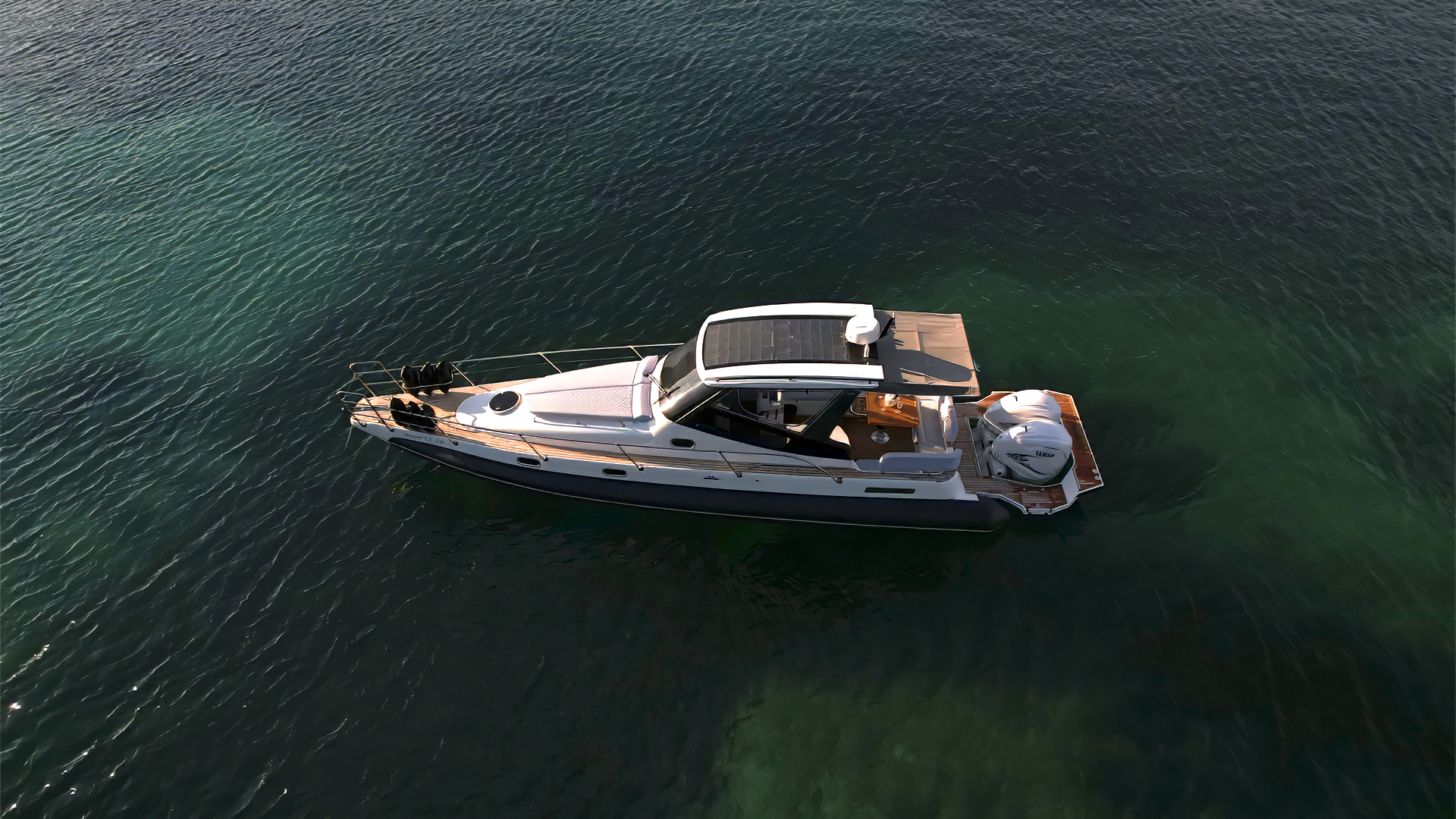 The vessel offers impressive performance thanks to two Yamaha engines of 425 hp each. Its service speed reaches 32 knots. The maximum speed is 57 knots, providing an exciting and dynamic cruising experience.