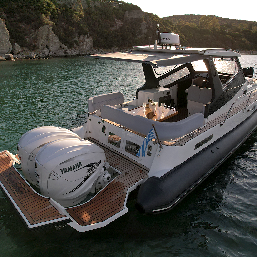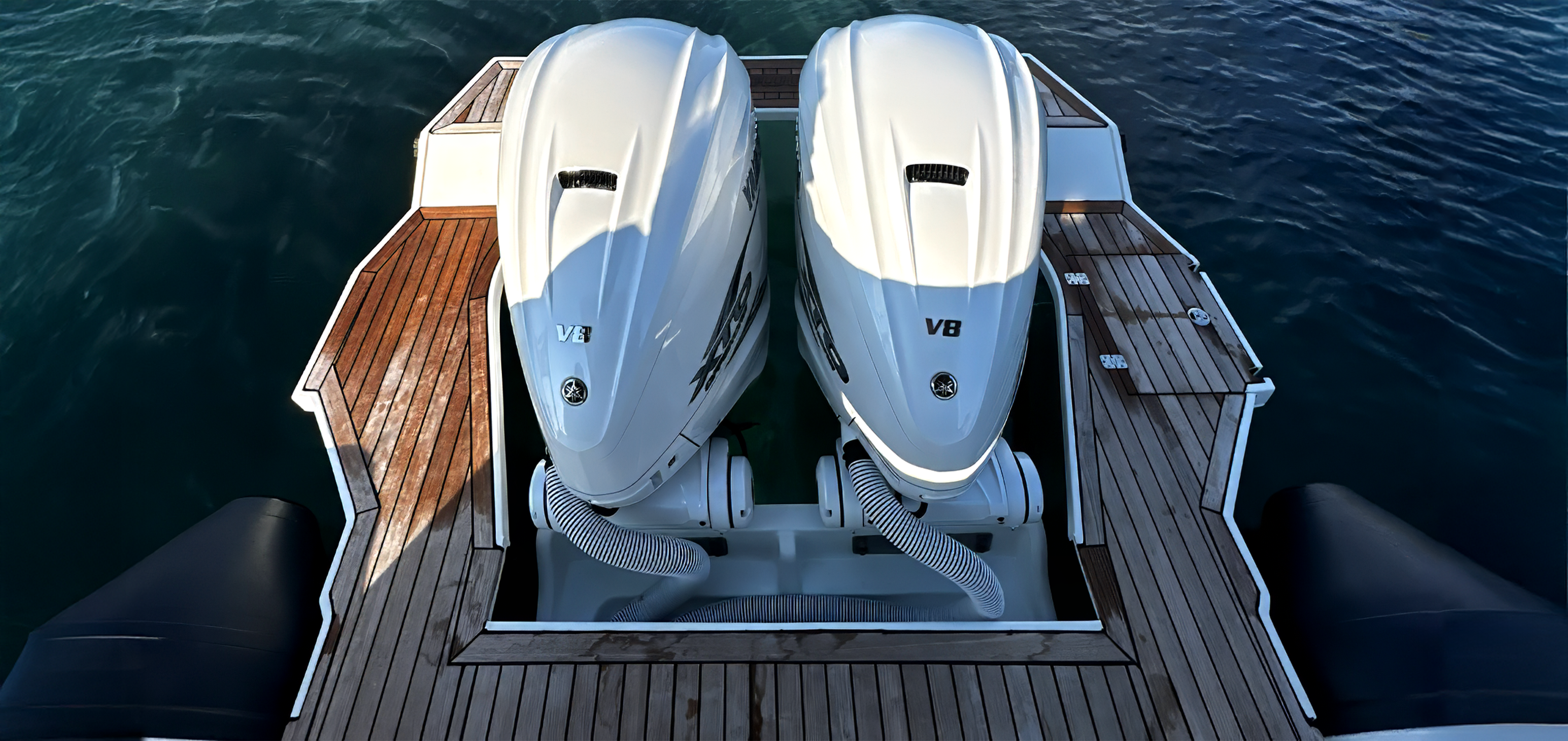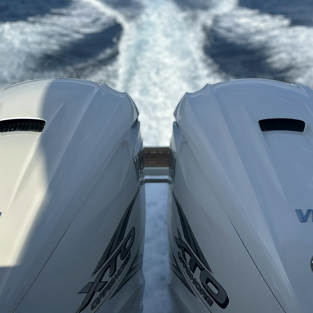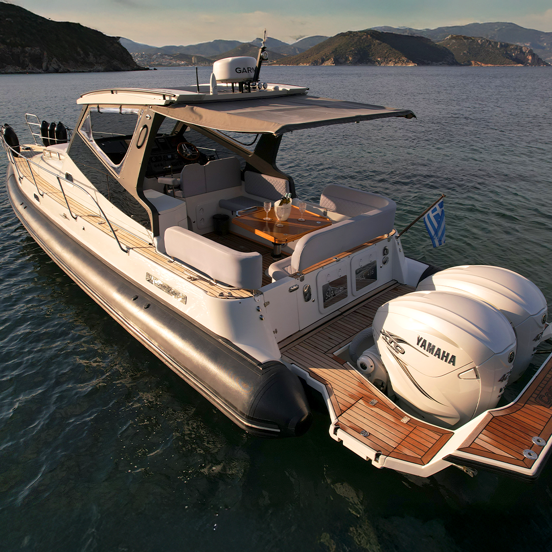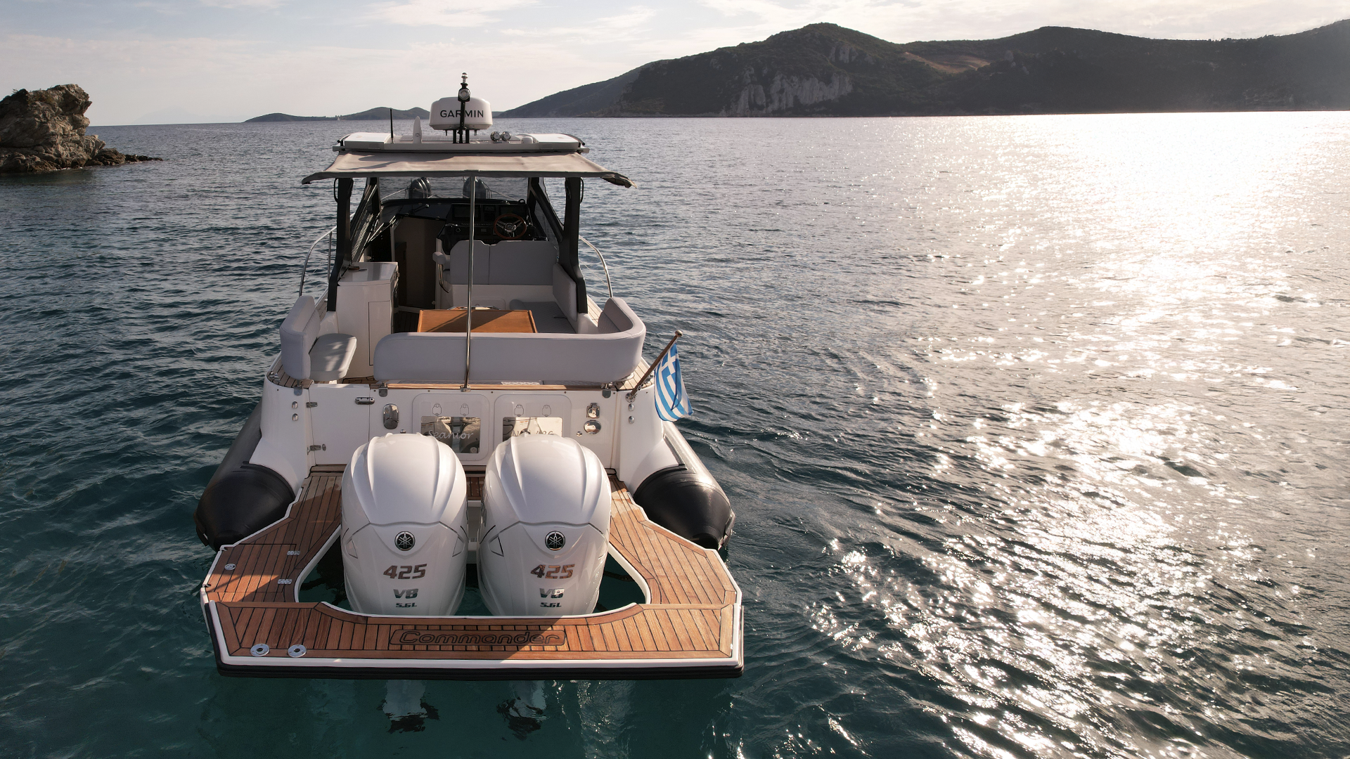 The vessel offers impressive performance thanks to two Yamaha engines of 425 hp each. Its service speed reaches 32 knots. The maximum speed is 57 knots, providing an exciting and dynamic cruising experience.
