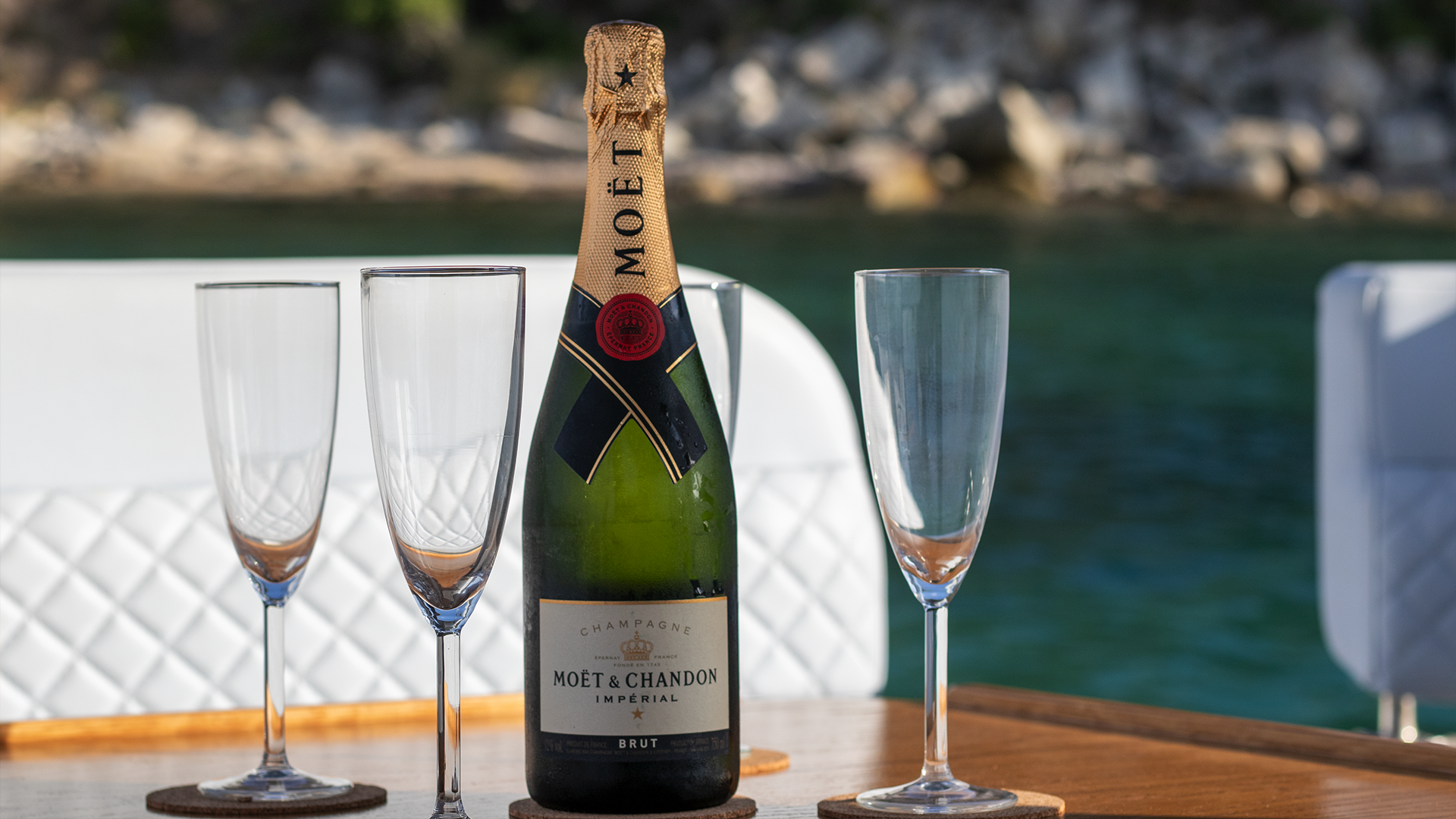 The vessel’s deck is designed to accommodate up to 10 people comfortably. The large living room includes a dining table that can easily be converted into a sun lounger, offering ideal conditions for relaxation under the sun or stars.