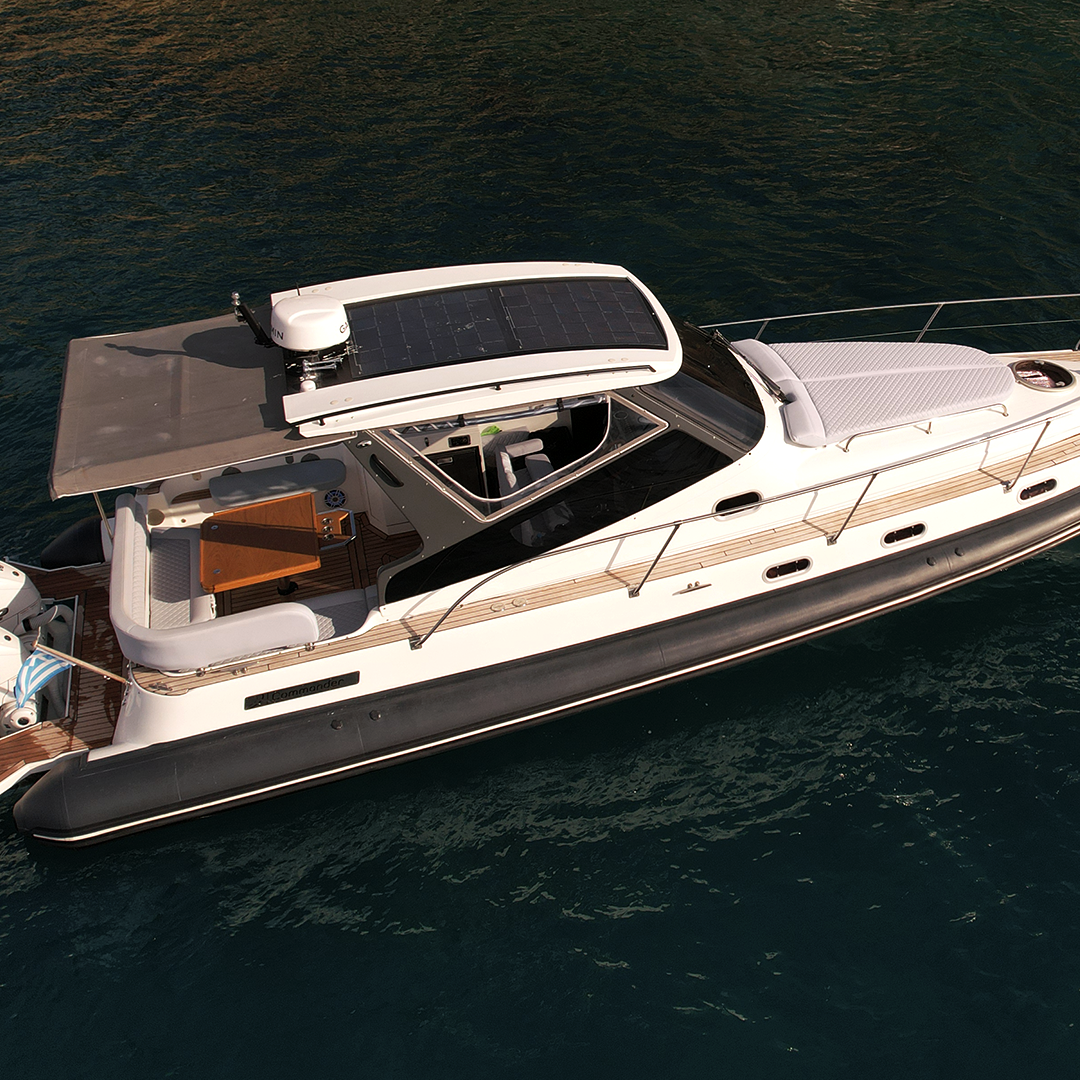 This vessel guarantees excellent stability and maneuverability with a total length of 12 meters and a width of 3.60 meters. Its spacious deck and comfortable design ensure comfort and luxury on every cruise.